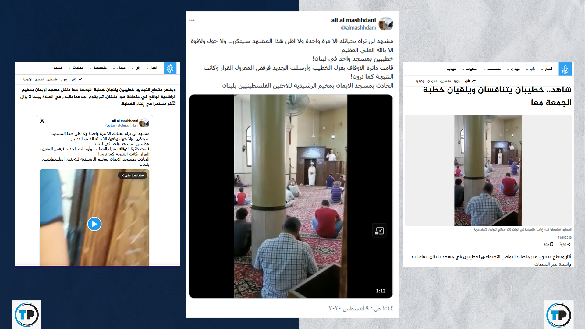 -أظهرت نتائج البحث العكسي أن وسائل إعلام نشرت المقطع الذي يعود لشهر كانون الثاني/يناير من عام 2020، وهو يوثق خلافاً وقع داخل مسجد في مخيم الرشيدية للاجئين الفلسطينيين بمدينة صور اللبنانية، وليس في سوريا.