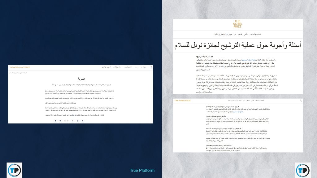 تحرى فريق شبكة تدقيق المعلومات- True Platform، حقيقة الادعاء وأجرى بحثاً عبر المصادر المفتوحة، وراجع حسابات رسمية، من بينها موقع جائزة نوبل للسلام، وتبين خلاف الادعاء.