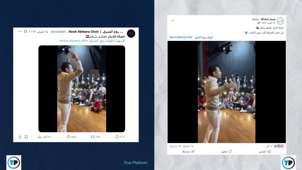 – أظهر البحث المتقدم عبر فيسبوك وإكس أن الفيديو نشرته فرقة كورال روح الشرق المصرية، في شباط/فبراير عام 2023 عبر حساباتها.