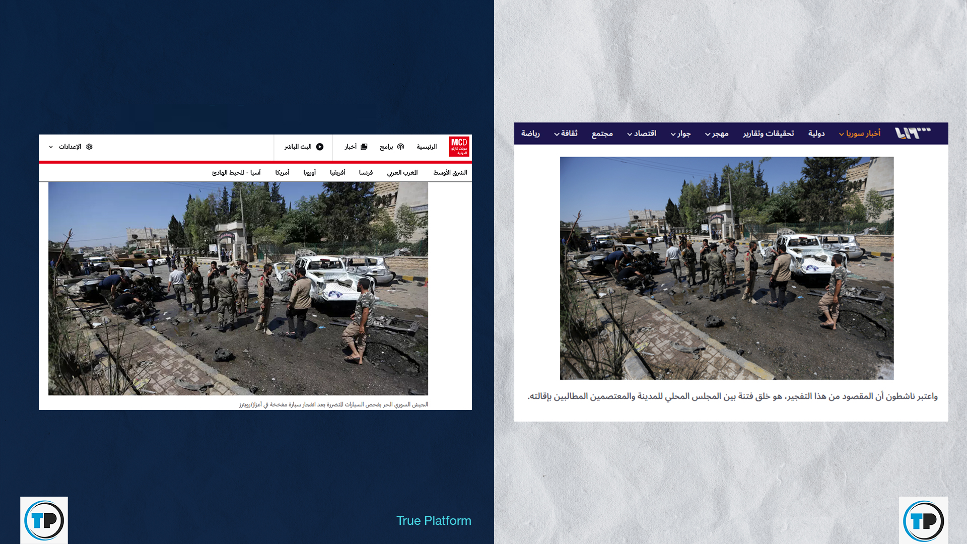 – أظهر البحث العكسي أن الصورة المتداولة مع الخبر تعود لانفجار وقع في مدينة اعزاز بريف حلب الشمالي عام 2018.