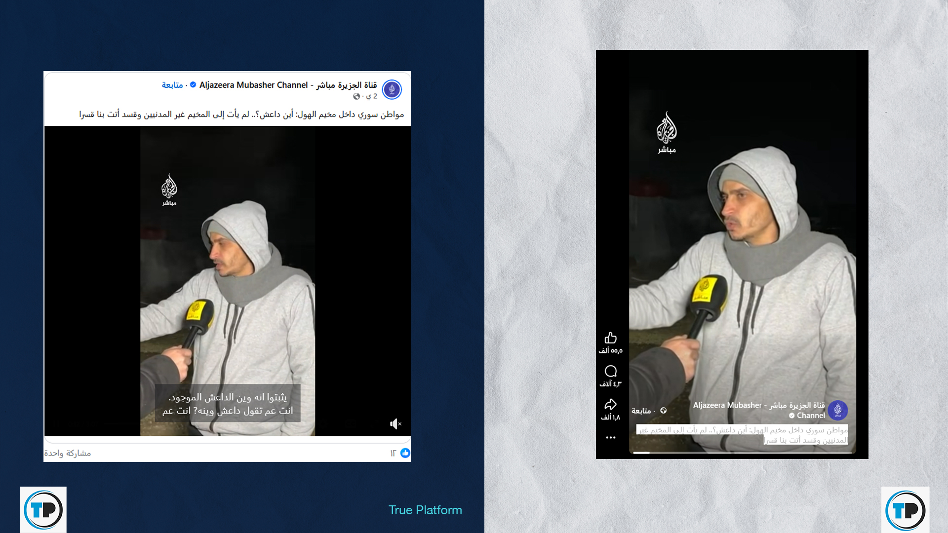 بثت قناة “الجزيرة مباشر” مؤخراً، لقاءً من مخيم الهول للاجئين، ظهر فيه شاب يدعي أنه “مدني” احتجزته قوات سوريا الديمقراطية قسراً منذ سنوات، نافياً وجود أي منتسبين لتنظيم داعش في المخيم، الواقع جنوبي محافظة الحسكة.