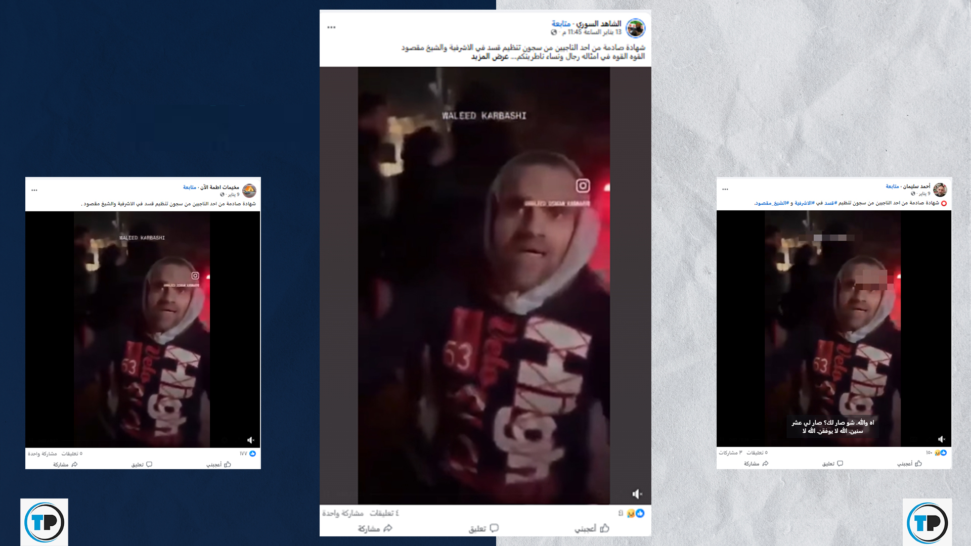 -المقطع المتداول قديم، نشره صحفي سوري عبر منصات التواصل أواخر 2025، بوصفه “مقطعاً أرشيفياً” يوثق عملية تحرير معتقلين في مدينة حلب من قبل “قوات ردع العدوان”.
