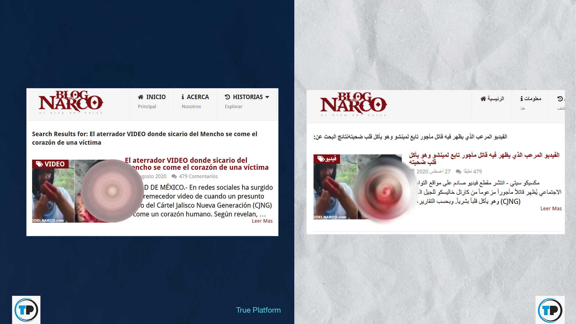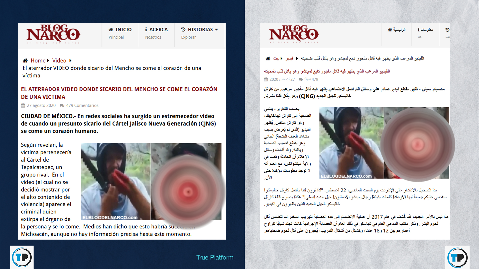-تبين أن الفيديو قديم، حيث نشره موقع مكسيكي في 27 آب/أغسطس 2020، تحت عنوان “فيديو مرعب يظهر أحد قتلة “إل مينشو” وهو يأكل قلب ضحية”.