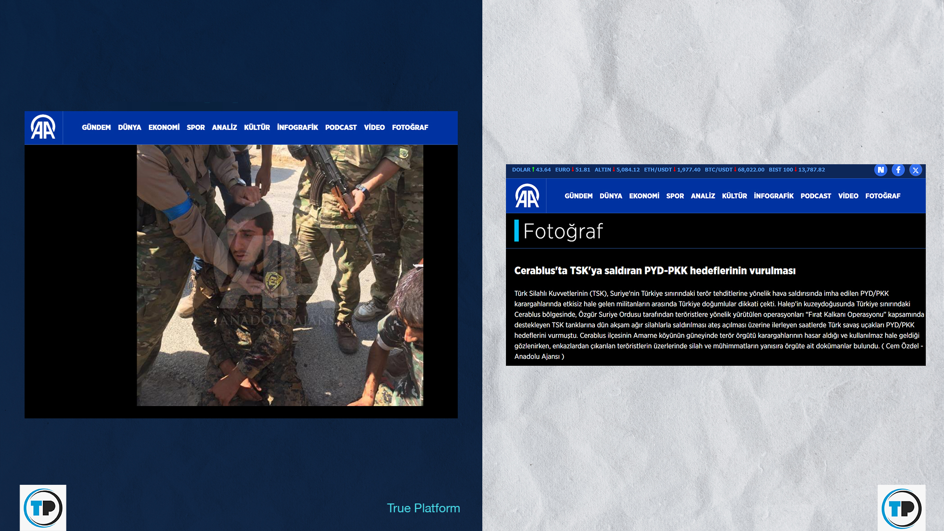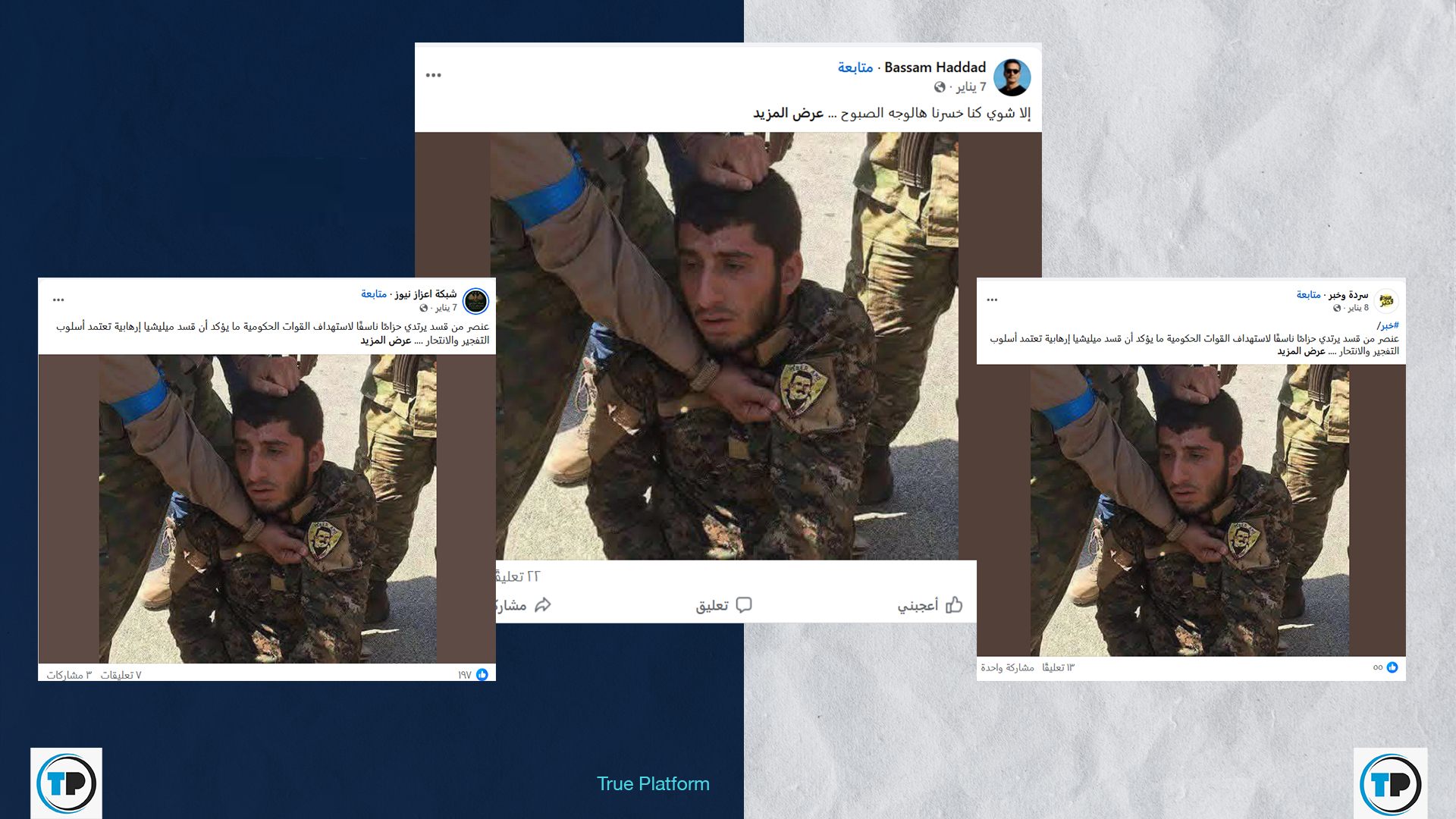 -أظهر البحث العكسي أن الصورة قديمة، حيث نُشرت لأول مرة في وسائل إعلام تركية في آب/ أغسطس 2016، ووثقت حينها إلقاء القبض على عنصر من “حزب الاتحاد الديمقراطي” (PYD) خلال عملية “درع الفرات” في ريف حلب الشمالي آنذاك.
