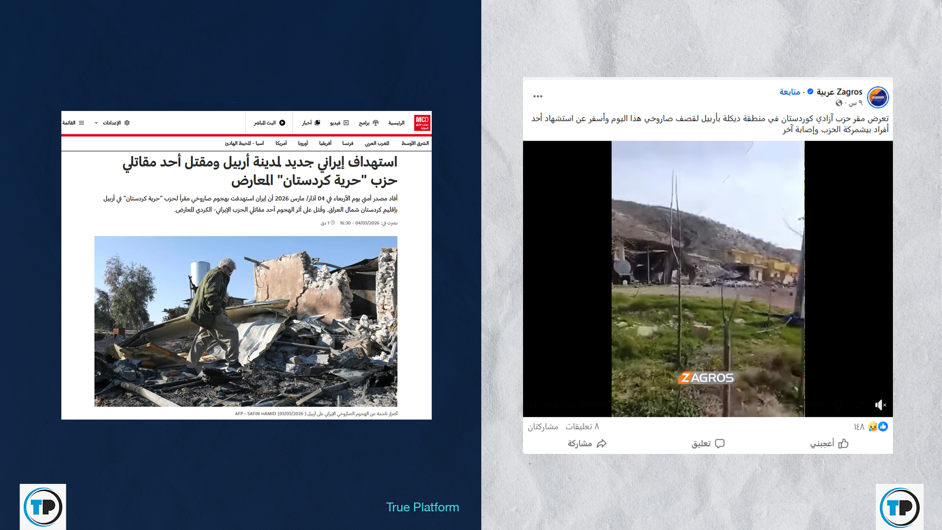 -أظهر البحث أن مواقع لأحزاب كردية إيرانية في أربيل تعرضت للقصف خلال الساعات الأخيرة، كمقر حزب آزادي كوردستان في منطقة ديكلة، ومقر الحزب الديمقراطي الكُردستاني الإيراني المعارض؛ في “قضاء كويسنجق”، شرق المحافظة، وهما حزبان غير مرتبطان بحزب العمال الكردستاني.