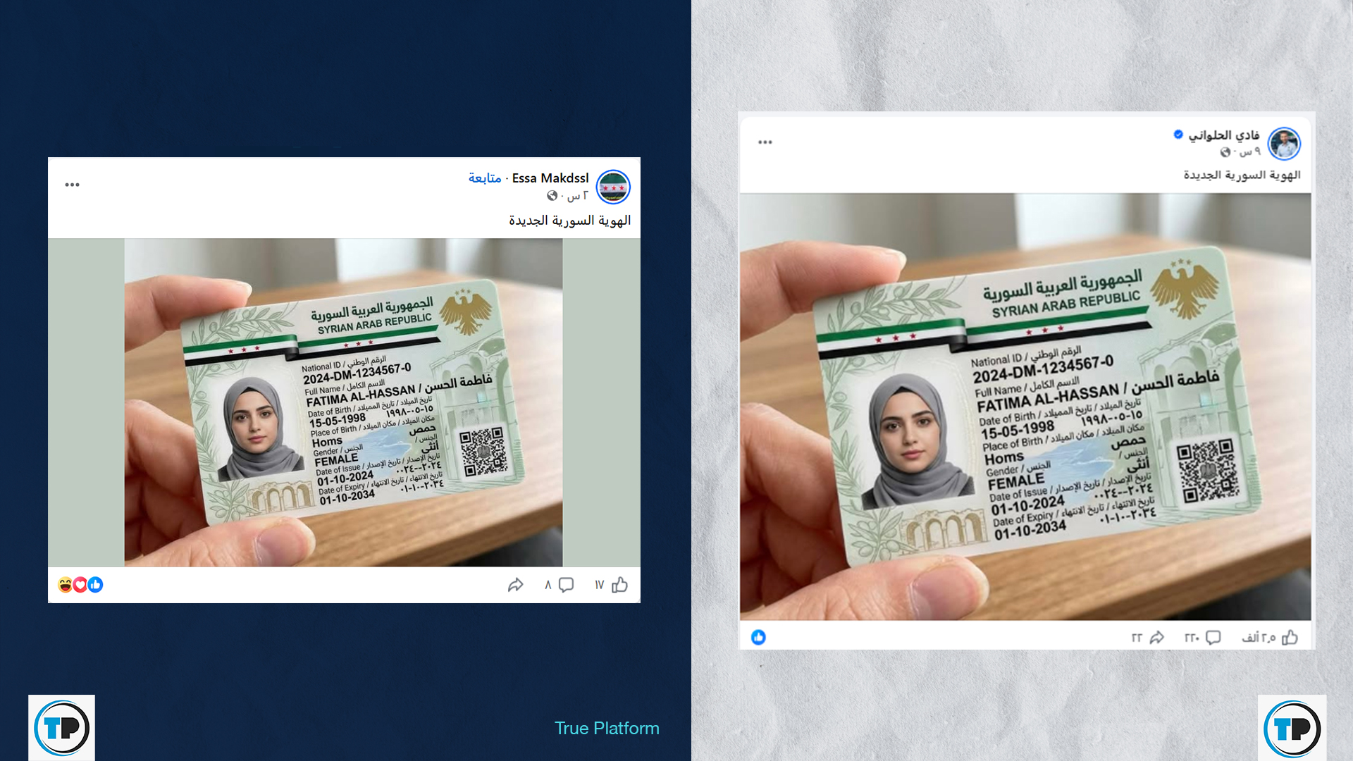 تداولت صفحات وحسابات عبر منصة فيسبوك مؤخراً، صورة لتصميم مع ادعاء أنها تعود للبطاقة الشخصية (الهوية) الجديدة في سوريا.